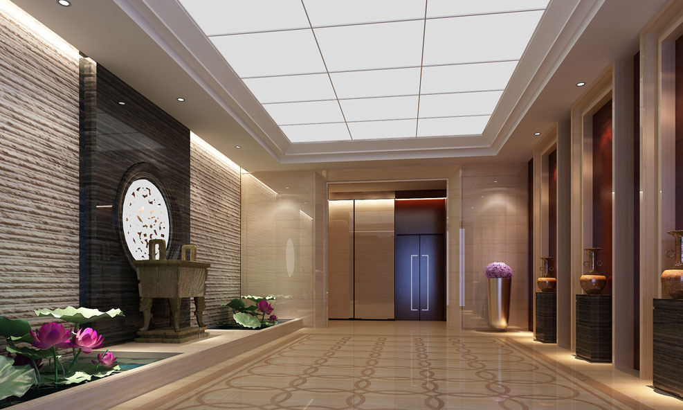 設計師在設計時保持了舒適性的特點外,在過道門廳區域運用大理石石材與仿古磚墻結構,營造出歷史感濃厚的空間,突顯了儒雅高貴的氣息。利用陳設的點綴,讓南浦國際金融中心顯現了沉穩的風格。